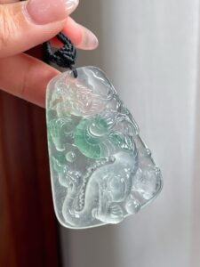 细腻工艺与天然材料 这款挂件注重雕刻细节,龙的鳞片、爪部以及精致的面部刻画都展现了匠人非凡的技艺。冰玻种翡翠作 […]