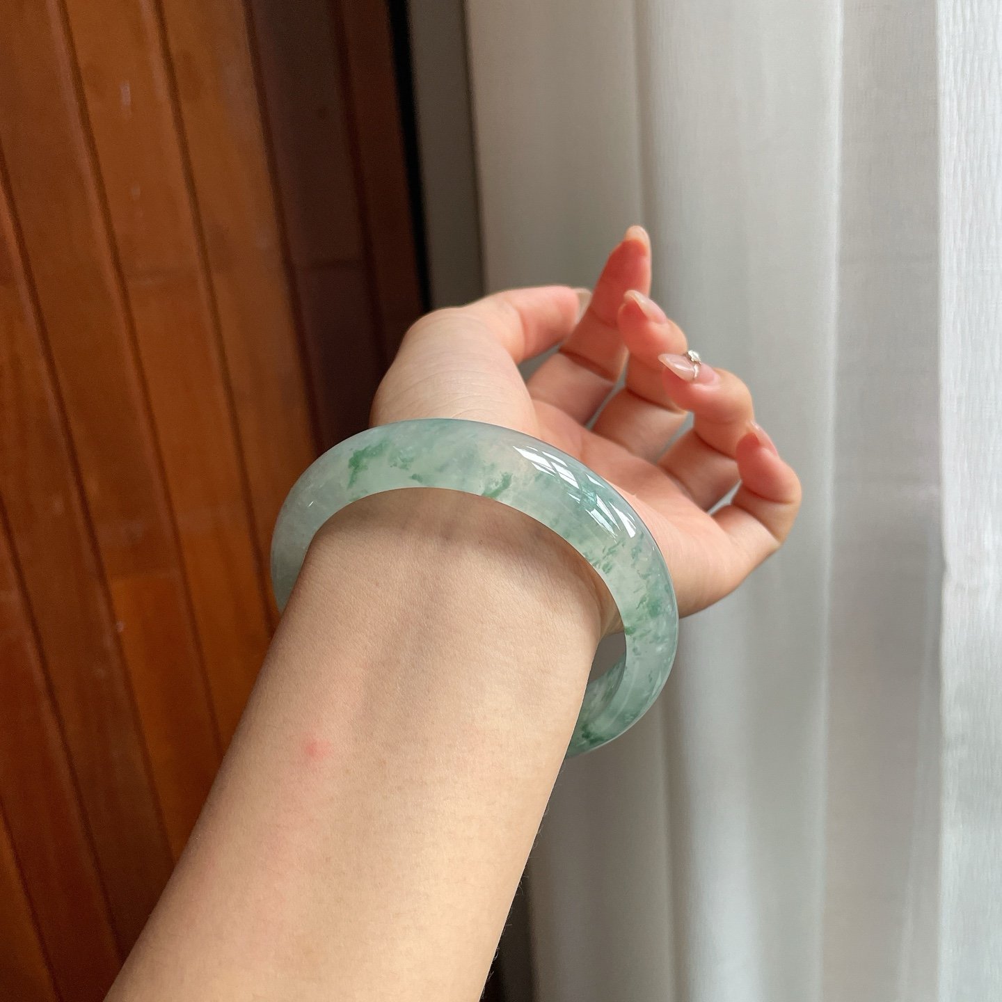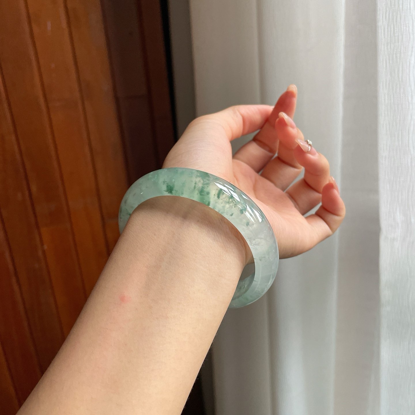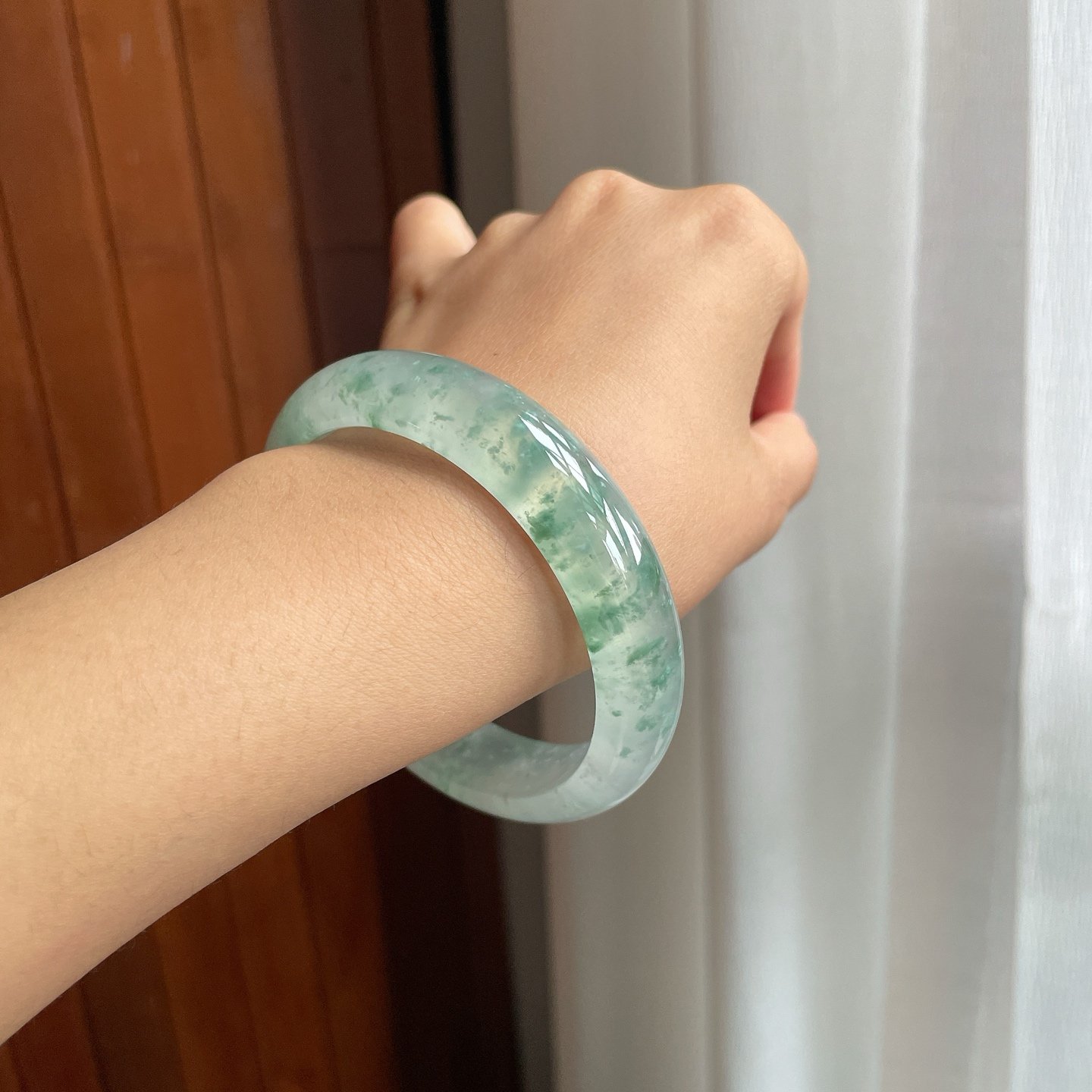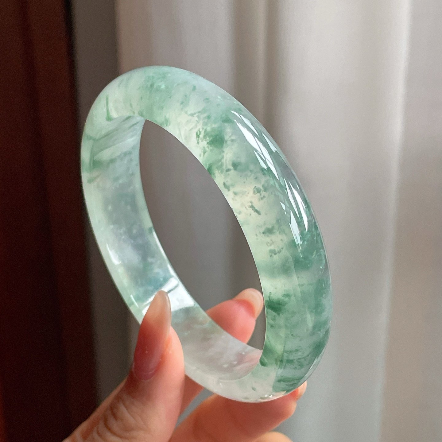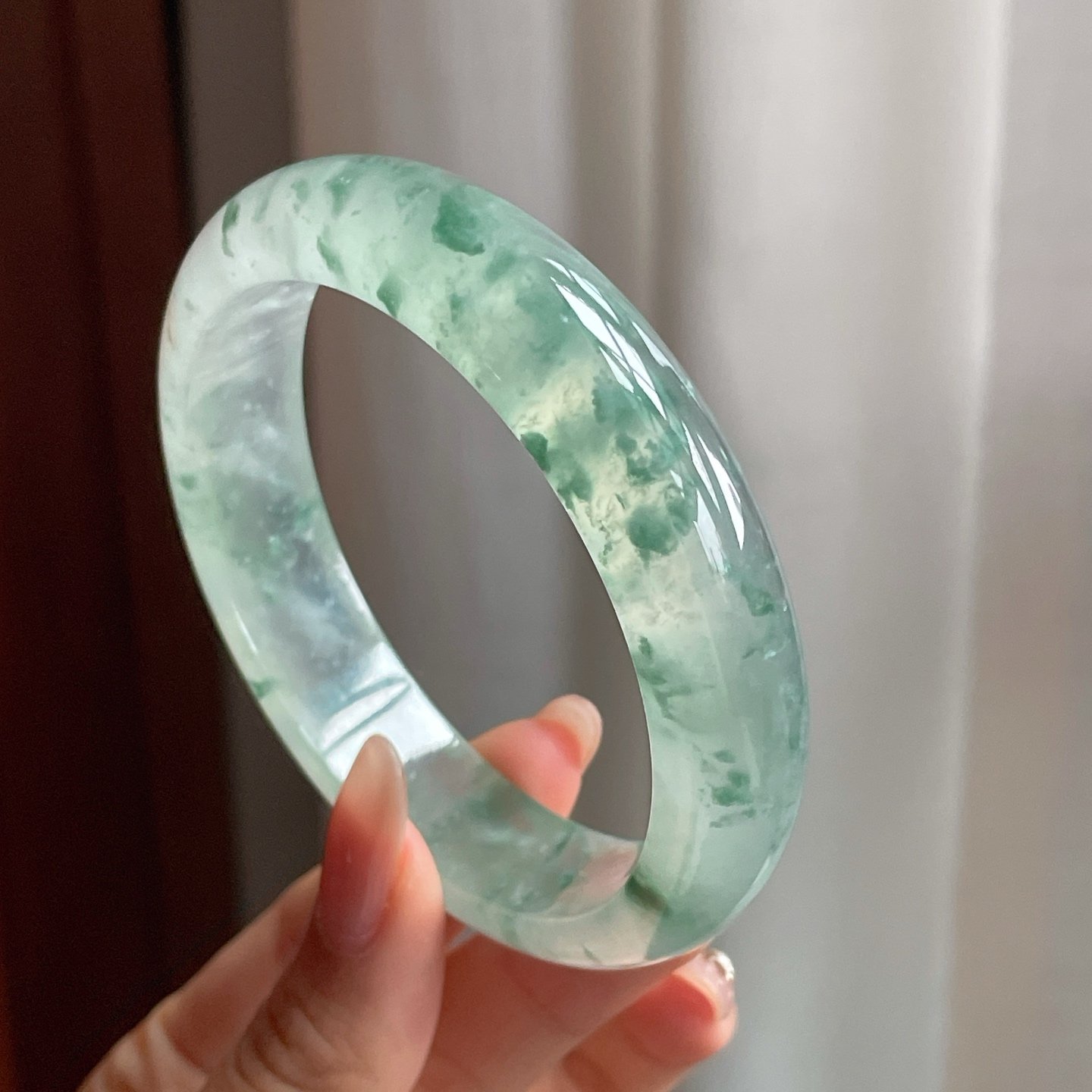 冰种飘花翡翠平安镯是传统与优雅的完美结合。这款手镯利用天然冰种翡翠精雕细琢而成,展现出润泽通透的清凉质感。翡翠中的自然飘花纹理更增添一丝独特个性,每一款都蕴含天然的艺术之美。这款手镯不仅展现了佩戴者的品味,更是一份温暖心意的象征。