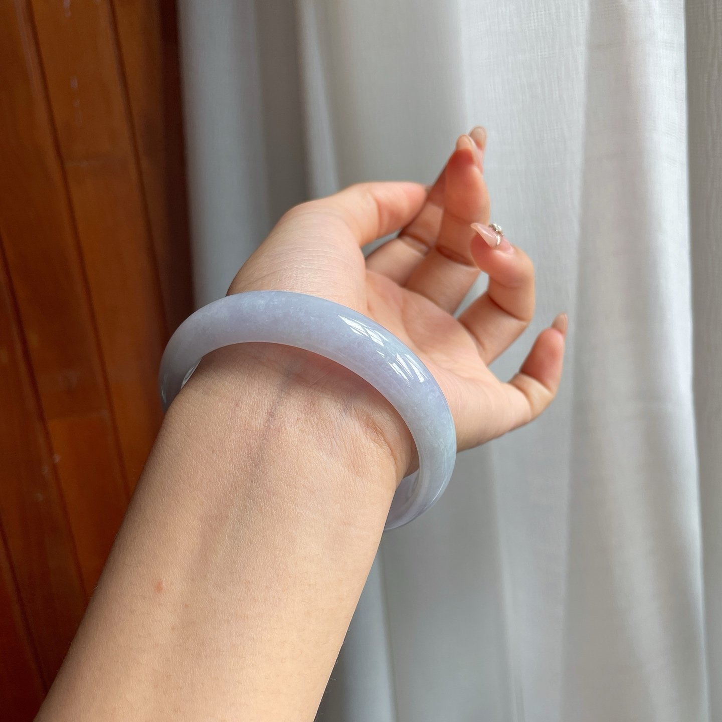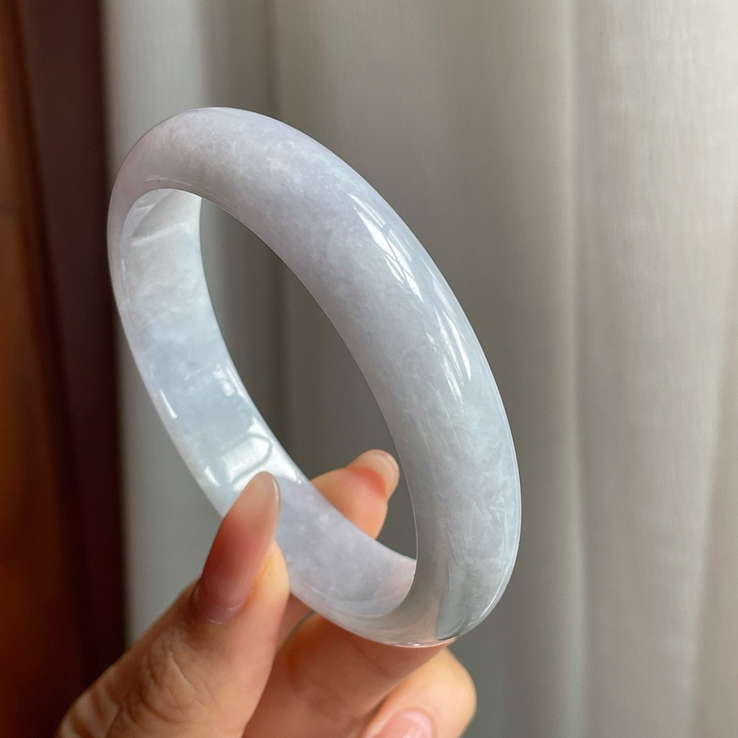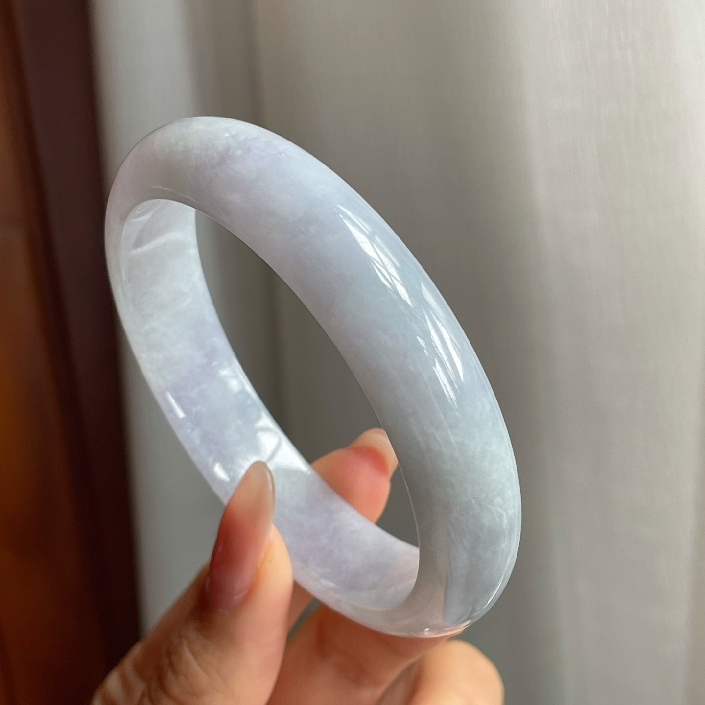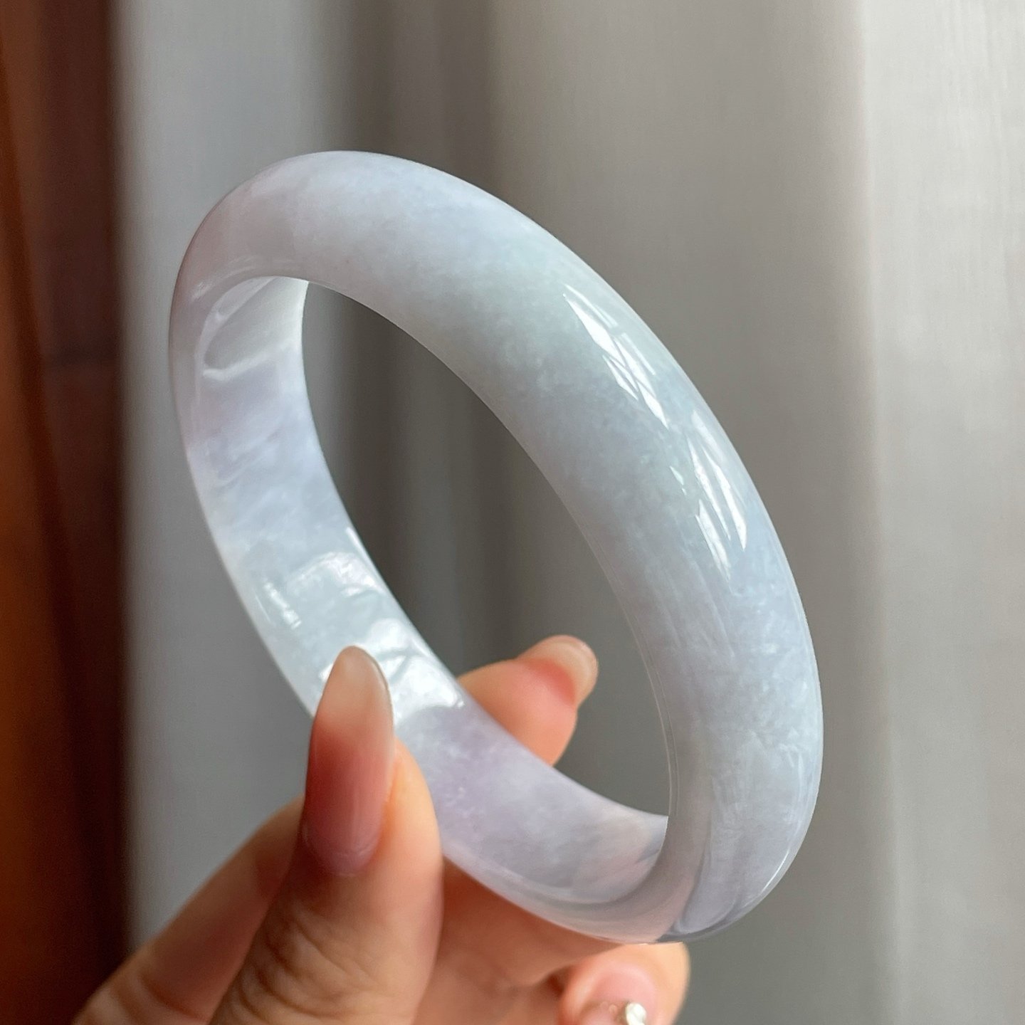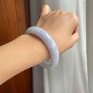 糯冰种淡紫底翡翠平安镯是一件兼具实用与美观,饱含传统文化内涵的珠宝珍品。由上佳的糯冰种质地翡翠匠心打造,淡紫色底调温润自然,如春日的微风拂过,令人倍感舒适与祥和。这款手镯不仅是一件装饰品,更是岁月沉淀和匠人心血的结晶。