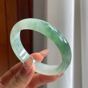每一件糯冰飘花翡翠平安镯都由经验丰富的匠人手工打磨,确保每一道工序都精益求精。您可根据自己的喜好选择适合的尺寸,轻松展现与众不同的美感。不论是作为个人珍藏,还是送给至亲好友,这款手镯都将成为值得珍视的传世佳品。