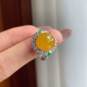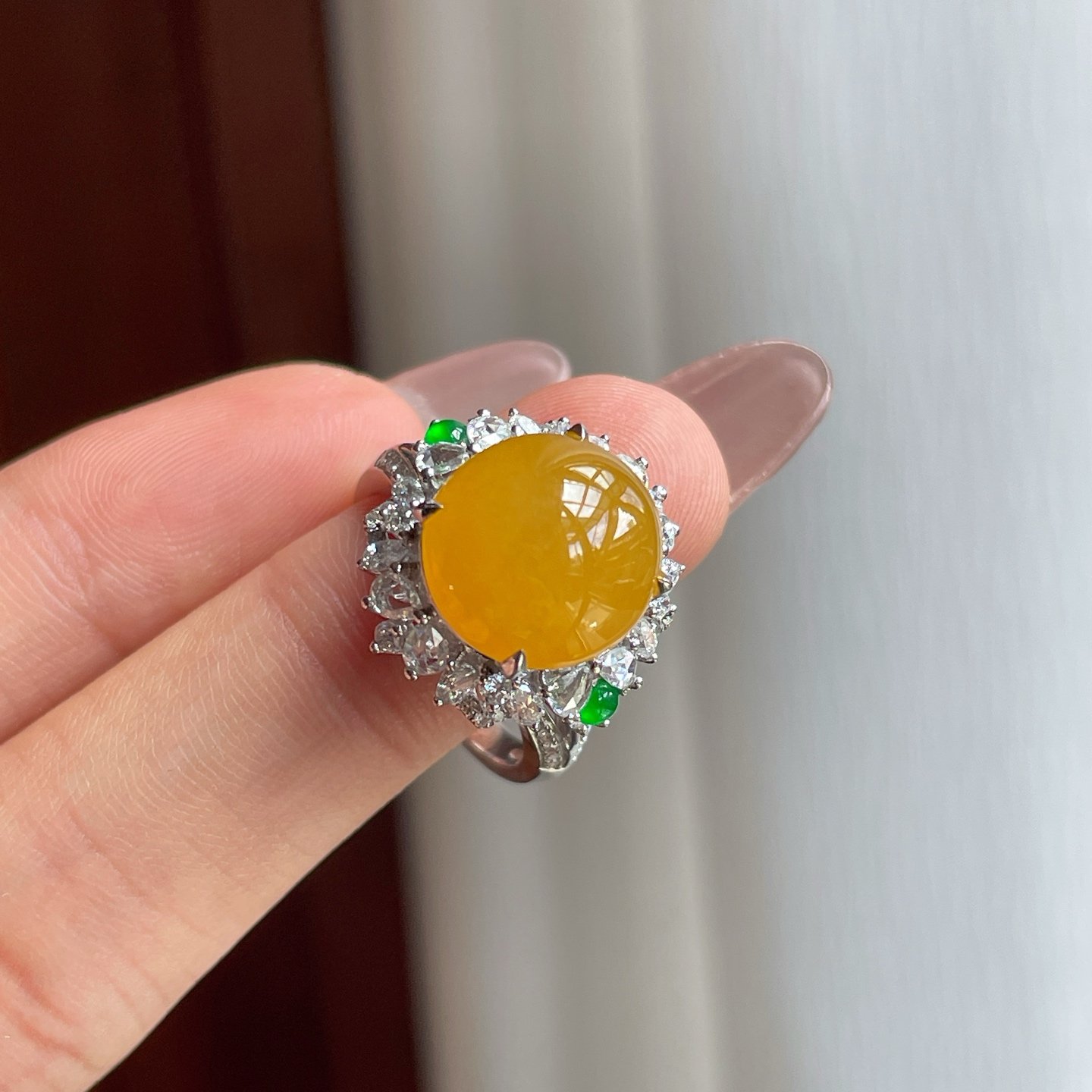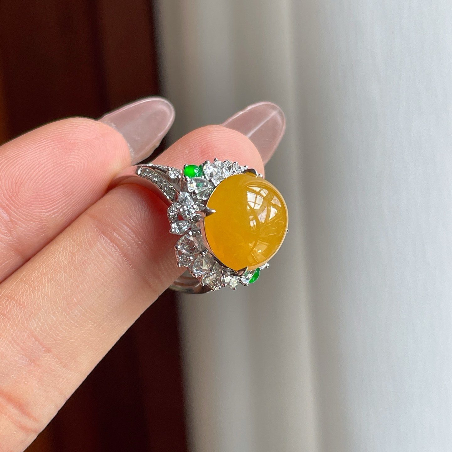 翡翠一直以其温润如玉的质感和深受中国文化推崇的寓意得到广泛青睐。这款戒指的冰种黄翡翠,更以其晶莹剔透的品质脱颖而出,散发迷人魅力。黄翡翠明艳的自然色调象征着幸福与富贵,让每一次佩戴都能彰显独特的个人风采,是您珠宝收藏中的绝佳选择。