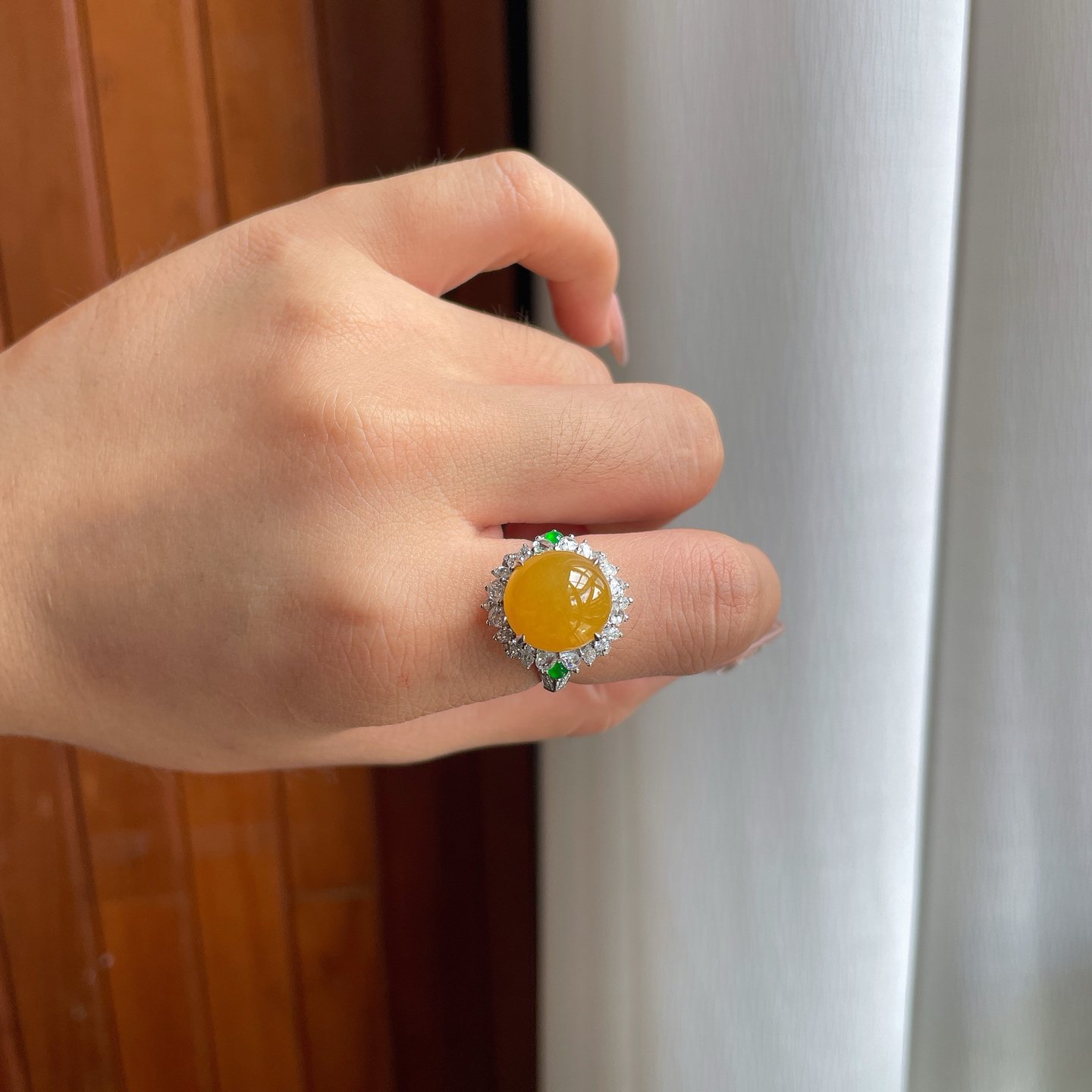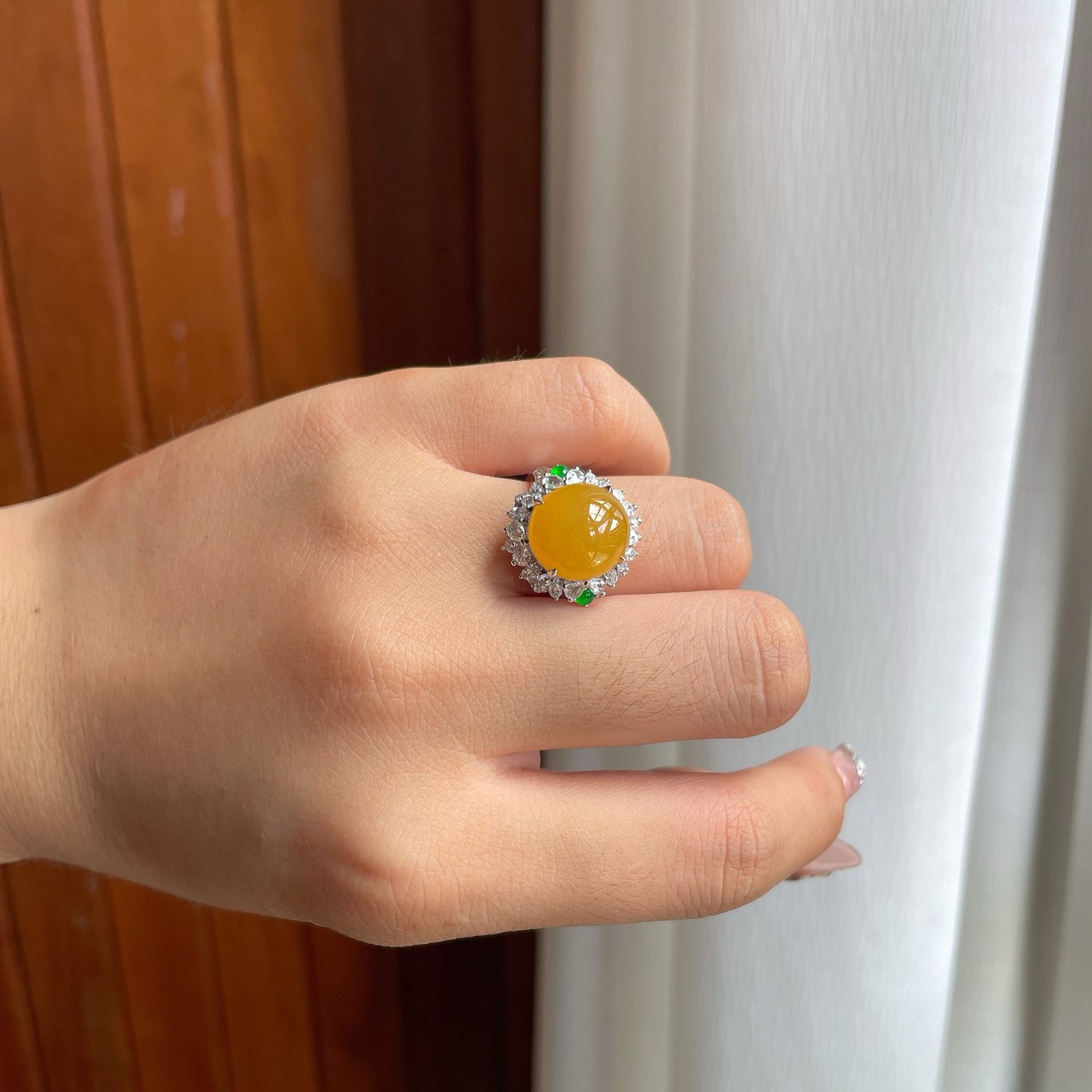 无论是正式场合还是日常佩戴,这款18k金钻镶冰种黄翡翡翠戒指都能成为点缀整体造型的亮点。不论是在婚礼、晚宴中展现奢华姿态,或是在商务场合传递低调高雅,它都能完美适配您的气质与装扮。更值得一提的是,这款戒指作为特别礼物也同样饱含心意,送予爱人、家人或挚友,表达真挚情感的同时,还能长久珍藏。